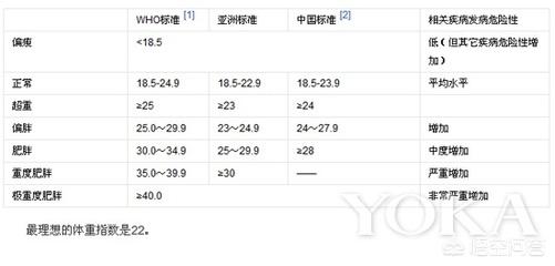 BMI(ボディマス指数)は体格指数と呼ばれ、一般的に人体の肥満の程度を測定し、健康の重要な基準かどうかを測定するために使用されます!そのため、計算式を通じて、正常な体重は年齢とは関係なく、身長と体重と関係があることを知ることができます!以下は参考表で、自分の身長と体重を使ってBMIの値を導き出し、以下の表で比較することで、自分の体重が正常範囲にないことを知ることができます!
