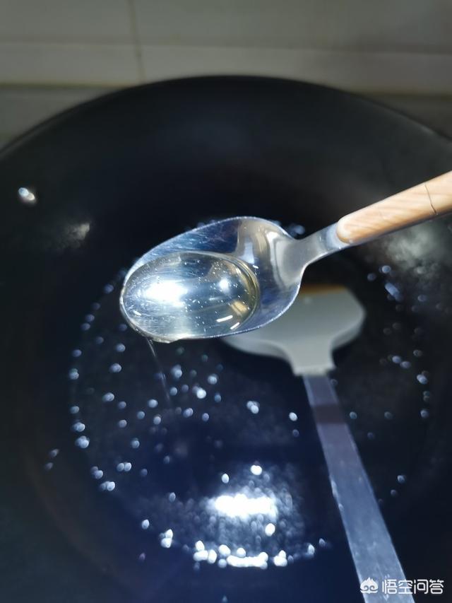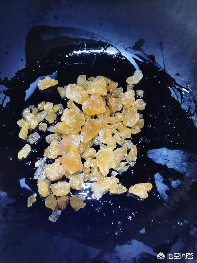 3、フライパンに底油をひき、油が熱くなったら氷砂糖を入れ、弱火で炒める。