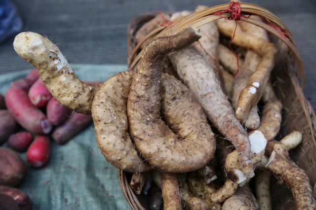 それに、アイアンヤムズ。長芋は細くて長く、皮はゴツゴツして毛が多く、水分が少ないため食感が締まっていて折れにくいので、鉄スティック長芋と呼ばれる。長期保存が可能なのもこの特徴によるものだ。栄養価が高いだけでなく、薬としても利用されることもある。脾胃を強め、肺陰を養い、腎精を強め、心を養い、心を静める。