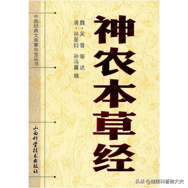 山芋に関する『神農本草経』(神农本草経)は、ディオスコレア(Dioscorea)として収載されている生薬/香辛(草/上品)の中で論じられており、それを抜粋して見ることができる。"味が甘く温かく、怪我の治療、虚弱を補い、寒熱の弊害を取り除くのに用いる。中庸を補い、気と力を益し、筋骨を成長させる。長期間服用すると、耳と目が賢くなり、体が軽くなり、空腹感がなくなり、寿命が延びる。山芋、生谷」。つまり、体の弱い人には気を持たせ、筋肉を発達させることができる。長い間食べると、耳と目がよくなる。
