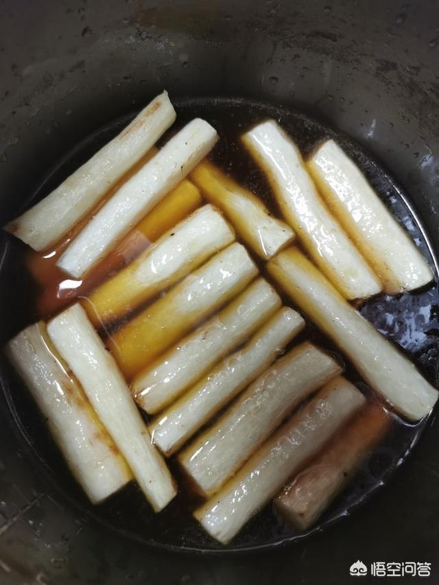 6、圧力鍋に揚げた長芋を入れ、沸騰した砂糖水を注ぎ、圧力鍋の圧力12〜15分。12〜15分で直接時間を調整し、味の好みに応じて、12分、15分は柔らかくなります。