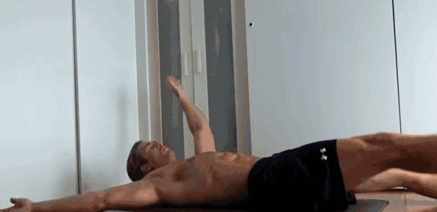 ミディアムセットの動き4-仰臥位交互ハンドプルカール20レップス