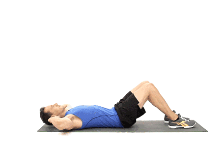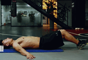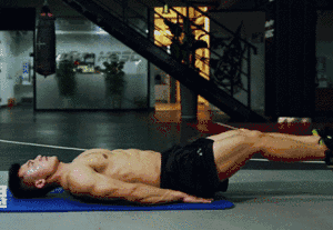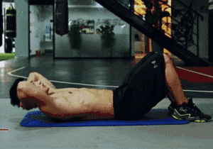 この動きで行うには、固体地面にあなたの足が90度曲がった脚、腰の貼り付け時に、どちらの側の手は、呼気の力が地面から持ち上げあなたの肩甲骨まで行く。