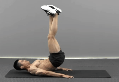 動作5:仰臥位でのレッグレイズ、メインエクササイズ:下腹部。