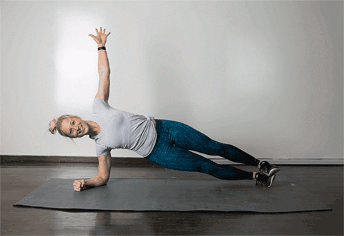 難易度の高いセット動作9:側屈ハンド・レイズ20レップ/回