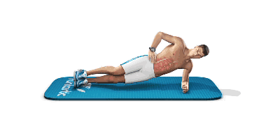 全体的なトレーニングでは、主な刺激は腹直筋、次いで腹斜筋、最後に腹横筋で3つの部位を締める。