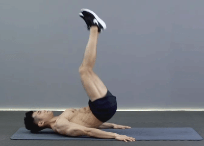 アクション8:仰臥位タッチフット、主な運動:腹直筋、体の連携を強化する。