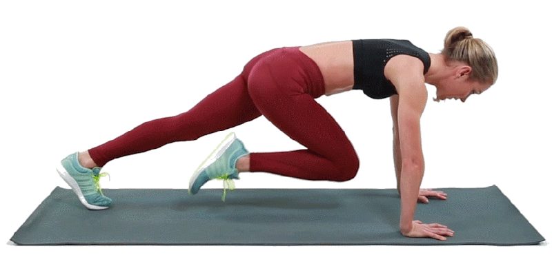 ハイ・レッグ・レイズ、オープン・アンド・クローズ・ジャンプ、ハイキング、ランニングを1回につき20~30秒、合計3~5セット行う。