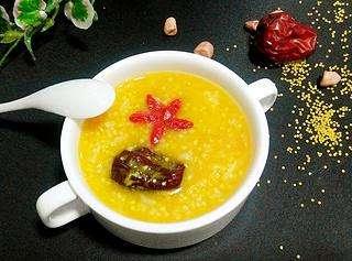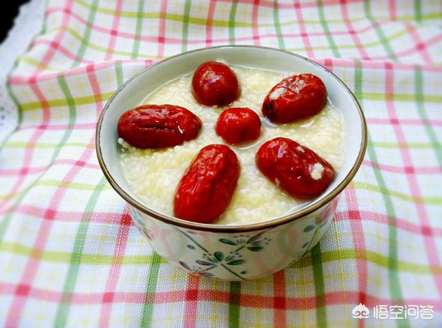 1.赤いナツメヤシと雑穀のお粥キビ、赤いナツメヤシ。アワは洗って水気を切り、鍋に入れ、弱火で水気がなくなるまで炒める。その後、赤いデーツの芯に入れ、十分な冷水を注ぎ、強火で沸騰させ、弱火にしてお粥にとろみがつくまで煮る。