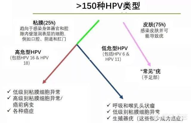 低リスク型HPVは、尋常性疣贅のような皮膚病変の原因となるほか、尖圭コンジローマのような性感染症(STD)の原因となり、通常は性交渉によって感染し、身体に大きな害を及ぼす。リスクの高いHPVは、肛門がん、前立腺がん、膀胱がん、子宮頸がん、口腔がんなどを引き起こす可能性が高い。
