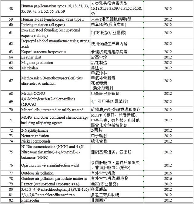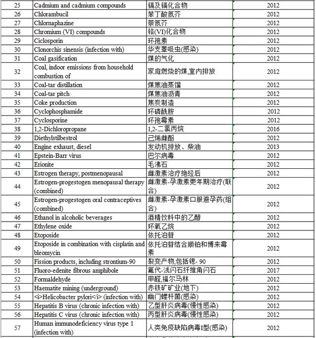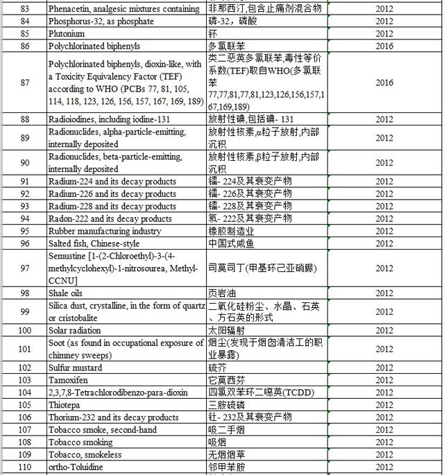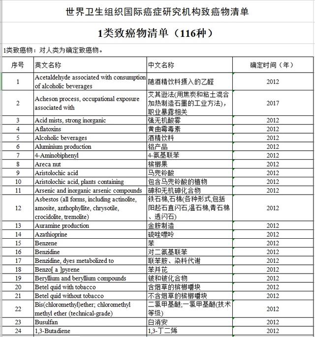 クラス1発がん性物質:これらの発がん性物質は、がんの発生と明確な関係があることが「決定的に証明されている」、つまり「食べるとがんになる」物質である。