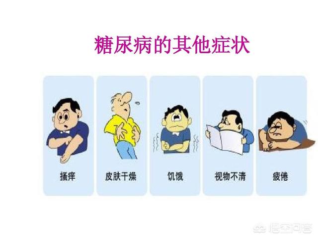 糖尿病患者の中には、明らかな糖尿病症状がなく、突然の目のかすみや視力障害、原因不明の全身の皮膚のかゆみや再発性のできもの、女性では外陰部のかゆみ、頻回の尿路感染症、足の裏の冷感、手足のしびれや痛み、さらには突然の脳血栓症、意識障害や昏睡などの合併症の兆候を示す人もいる。このような状態を発見したら、できるだけ早く病院に行って検査を受ける必要がある。