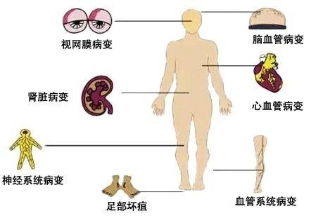 糖尿病には急性合併症と慢性合併症があり、急性合併症は一般的に突然発症し、生命を非常に脅かす。慢性の合併症は通常、症状が進行しにくく、経過を観察しなければ、身体障害や早期の死につながる可能性がある。