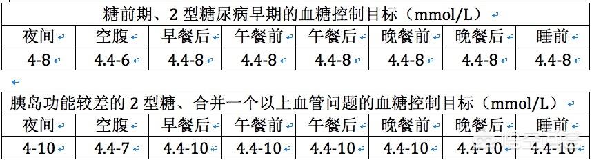 糖尿病患者の血糖コントロール目標:空腹時血糖値≦6.1mmol/L;食後血糖値≦7.8mmol/L;糖化ヘモグロビン≦6.5%。