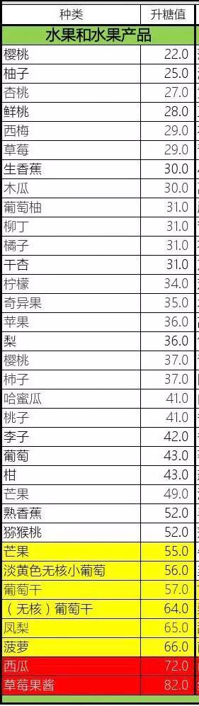 果物は主に二糖類と単糖類で、単糖類は主に果糖ですが、果糖は体内でブドウ糖に変換されます。糖尿病の食事コントロールは主に総カロリーのコントロールであり、果物を食べたいのであれば、そのカロリーを一日のカロリーに割り引く必要があり、つまり他の食品の摂取量を減らす必要がある。 まず、グリセミック指数とは何かについて簡単に紹介する:英語の正式名称(Glycemic Index)は、(GI)と呼ばれ、血糖値時間曲線の下の面積によって生成された血糖値の上昇によって引き起こされる特定の食品の炭水化物の標準的な定量(一般的に50グラム)を指し、標準物質(一般的にグルコース)は、グルコース時間比の時間の下の面積によって生成され、それを100倍して、特定の食品を反映しているグルコースと比較して、食品が血糖を上昇させる速度と能力を反映している。現在、グリセミック指数の低い食品を選ぶ方が血糖コントロールに有益であると考えられている。食品によってグリセミック指数は異なり、ブドウ糖のグリセミック指数は通常100とされている。 グリセミック指数が70以上の食品は高グリセミック指数食品、55未満の食品は低グリセミック指数食品とされている。インターネットでいろいろな果物のグリセミック指数を調べることができる。どのような果物が適さないかと言えば、ナツメヤシ、ブドウ、パイナップルなどグリセミック指数の高い果物は食べるのを控えた方が良いと思う。しかし、グリセミック指数を完全に見てはいけない場合もある。グリセミック指数は高いが糖度が低い果物もある。例えば、スイカはグリセミック指数72だが、糖度は4%で、血糖負荷は低いので、食べることも可能である。つまり、大切なのは量をマスターすることだ。また、血糖コントロールが安定しているときは、2食の真ん中に食べるようにしましょう。血糖値が高すぎる場合、あるいはケトーシスの場合は、当分食べないこと。