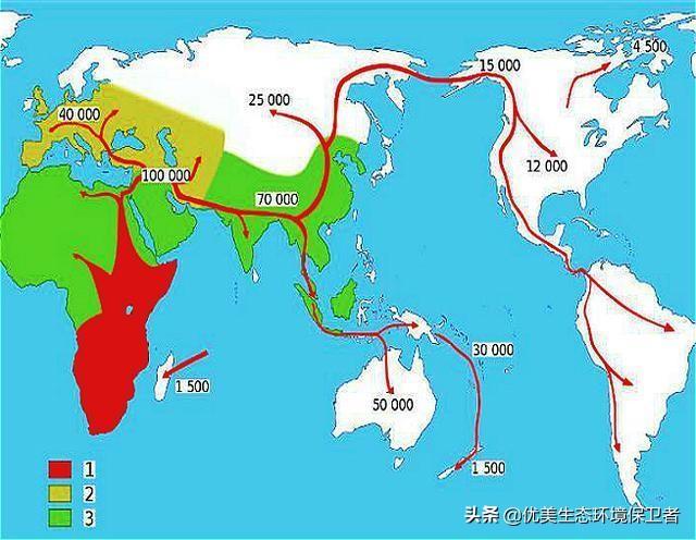 ホモ・サピエンスは7万年前にアフリカから脱出し、ネアンデルタール人を征服した後、アジアとヨーロッパに向かって広がり始め、そのうちの1つがヨーロッパに北上し、そのうちの1つが途中で進路を変え、シベリアの雪の平原からモンゴルを横断してアジアの東海岸に至り、このグループから広がり続け、その一部が凍結したベーリング海峡を通ってアメリカ大陸に到達した。--インディアン、マヤ人、アステカ人、インカ人。