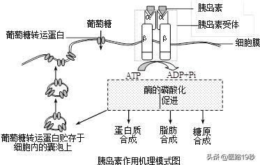 そして、この分配は主にインスリンによって行われる。インスリンは膵臓のB細胞から血液中に分泌され、その後内臓の組織に分泌され、さまざまな場所の通路を開く鍵に相当する。例えば細胞チャンネルを開く細胞内に入り込んだグルコースは、細胞に容量を供給する;肝細胞に開放グリコーゲンを合成し、グルコースを貯蔵するために、グルコースが肝細胞に入るのを促進する;筋肉細胞を開くブドウ糖が筋肉に入るのを促進する;脂肪組織への扉を開くインスリンは、ブドウ糖が脂肪組織に入り、脂肪に変化して貯蔵されるのを助ける。また、インスリンは体内で以下のような様々な種類のブドウ糖の生成を抑制する。タンパク質のグルコースへの分解、脂肪のグルコースへの分解、肝グリコーゲンによるグルコースの分解を抑制する。