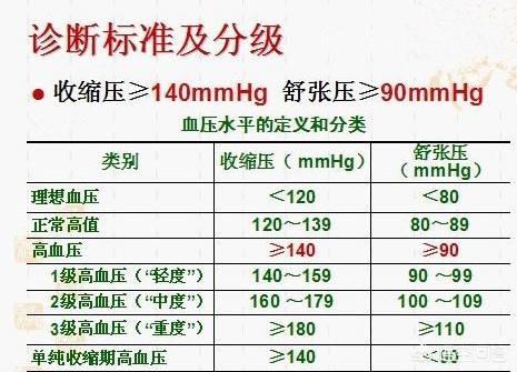 高血圧の等級は主に血圧(収縮期血圧と拡張期血圧)の値に基づいており、血圧の値が高いほど等級が高くなり、人体に有害である。高血圧グレード1:収縮期血圧140~159mmHgおよび/または拡張期血圧90~99mmHg;高血圧グレード2:収縮期血圧160~179mmHgおよび/または拡張期血圧100~109mmHg;高血圧グレード3:収縮期血圧≧180mmHgおよび/または拡張期血圧≧110mmHg。