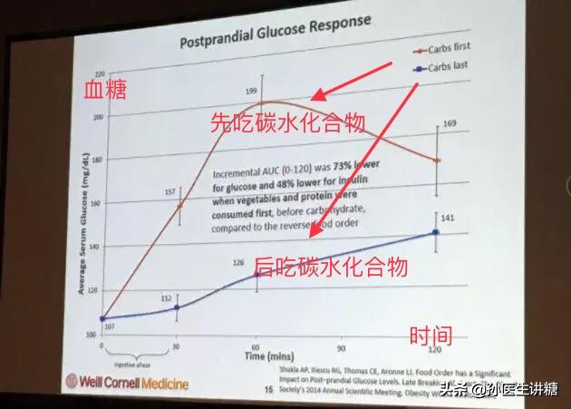 こんにちは、最初に野菜を食べる、私たちの胃腸管の最初の接触は、低糖質のまばらな野菜(食物繊維)である、それは消化液の一部を消費するので、食事(主食)の消化が遅く入力した後、主食が多糖類に変換され、その後、グルコース(血糖)に変換されるように、この時間は、血糖値が少し遅く上昇する、食事(主食)が最初に炭水化物(デンプン、多糖類)を消化吸収される場合、食事(主食)を先にすると、炭水化物(デンプン、多糖類、ブドウ糖)が先に消化吸収され、血糖値がどんどん上がり、血糖値の変動が大きくなり、循環器系、さらには全身に悪影響を及ぼす!