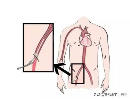 (1)パーツを行う:ほとんどの場合、冠動脈造影に選択される血管は橈骨動脈(手首)か、手首の血管の状態が悪く手術ができない場合は大腿動脈(太ももの付け根)である。