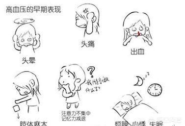 高血圧の症状があるとすれば、一般的にはめまい、頭痛、不眠、耳鳴り、パニック、胸のつかえ、息切れ、物忘れ、手足のしびれ、歯からの出血が多い、鼻血、目の下の出血、目のかすみなどである。このような症状が現れた場合、血圧は2級か3級以上であり、それ以上の期間が長ければ、決して初期の高血圧症ではない。