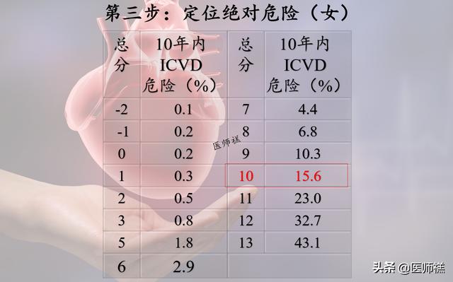 心血管リスクを評価する手段は世界中に数え切れないほどあるが、そのほとんどはわが国の基本的な条件には適していない。したがってわが国では「冠動脈性心疾患と脳卒中の包括的リスク評価と介入プログラムに関する研究プロジェクト "15 "の研究グループ。これによって、私たちは私たちの集団に適した虚血性心血管病のリスク評価法を確立しました。この方法を用いて、あなたの将来の病気の可能性を簡単に評価する方法をお見せしましょう。身長1.70m、体重90kg、血圧160/100mmHg、コレステロール値5.3mmol/L、糖尿病、喫煙者の45歳男性を例に考えてみましょう。