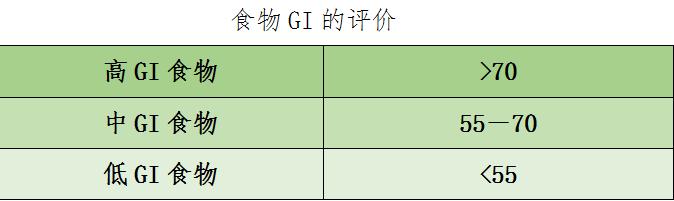 通常、GI値が55未満の食品は低GI食品、55~70は中GI食品、70以上は高GI食品と呼ばれ[2]、値が大きいほど血糖値を上昇させる傾向が強いことを示す。
