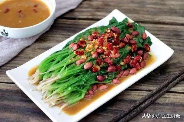 また、糖尿病患者には、1日に25グラム以上の油脂を摂らない方がよい。糖尿病患者には、ベジタリアン料理、それも緑黄色野菜を食べるのが一番適している。例えば、セロリ、ゴーヤ、ピーマン、キョウチクトウ、キャベツ、キュウリ、これらは糖尿病患者が食べるのに適している。糖尿病患者は、脂っこいもの、特に揚げ物を控えるようにする。もう一つ注意すべき点は、ピーナッツを食べるとき、決してピーナッツを料理として食べないことである。ピーナッツ豆は、ピーナッツときざみ豆腐を一緒に冷やして食べるなど、他の冷たい料理と一緒に食べることができる。ピーナッツを毎日食べるのは量を制限するためで、例えば5~6粒程度なら食べられる。