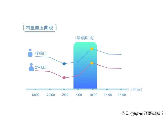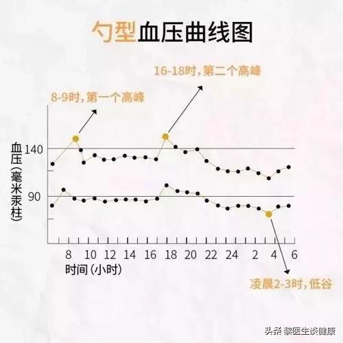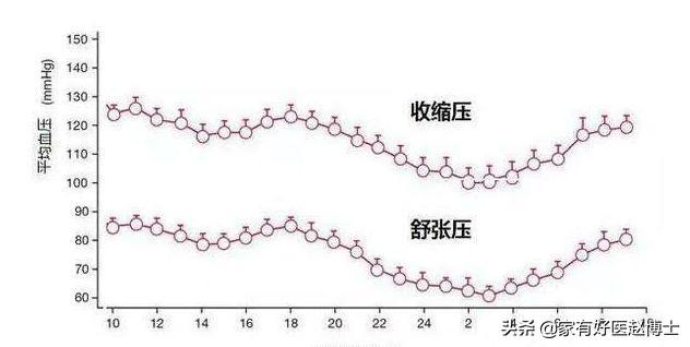 高血圧患者の多くも、この「二重の山と谷」の法則を示すが、血圧変動の振幅は20mmHgをはるかに超える。これが、高血圧患者が早朝に心筋梗塞を起こしやすく、朝に脳卒中を起こしやすい主な理由である。高血圧患者は血圧が異常に高いだけでなく、血圧が大きく変動しやすいが、これは血管のエラストレセプターの機能が低下し、血圧を調節する能力が低下しているためである。
