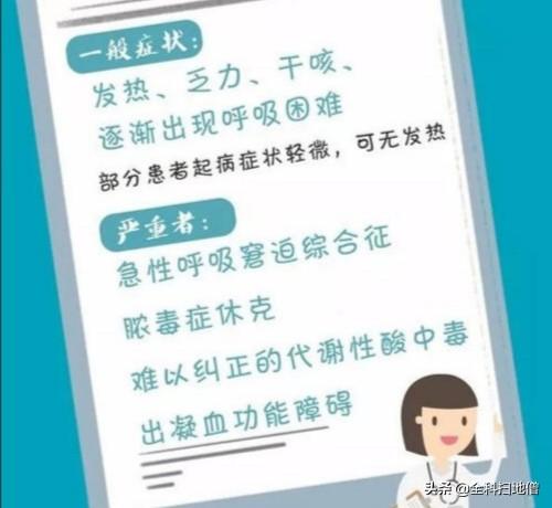 新型コロナウイルスは感染力が強く、万人に感染しやすい。 人体に侵入すると、一連の臨床症状や肺炎などの合併症を引き起こす。最も一般的な症状は発熱、乾いた咳、倦怠感で、少数の患者には鼻づまり、鼻水、咽頭痛、筋肉痛、下痢などの症状を伴うこともある。 大多数の患者は症状が軽く、積極的な治療ですぐに正常に戻る。