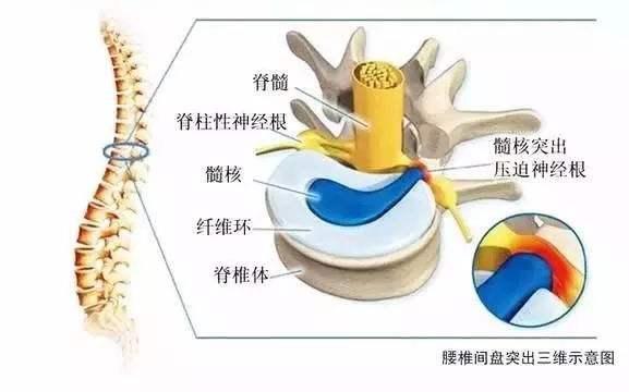 腰椎の主な構造は、円錐と円錐の間にある椎間板からなり、椎間板は外側の線維性環状骨と内側の髄核からなる。椎間板の中の髄核は水分が多く、変形が良いため弾力性があり、衝撃を吸収して腰椎の動きを調整する重要な機能を持っている。腰椎椎間板ヘルニアは、椎間板が変性変化を起こし、弾力性が低下し、もろくなり、長時間の持続的な圧迫や過度の圧迫などの刺激と相まって、線維輪が破裂し、破裂した線維輪から髄核が突出して神経根を圧迫し、痛みなどの一連の症状を引き起こす疾患である。