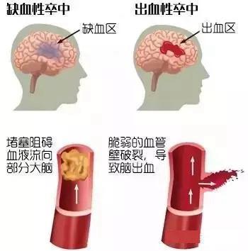 脳出血(脳梗塞、脳出血)。脳梗塞を発症しても状態が安定している場合は、降圧治療の目標値は140/90mmHg未満であるが、急性脳梗塞の発症初期(特に24時間以内)は頭蓋内圧の上昇により、脳への血液供給を確保するために体が血圧を調節するため、この時は血圧が特に高くない限り、急いで血圧を下げる必要はない。急性虚血性脳卒中(脳梗塞)では、一般に血圧が180/100mmHg以上、あるいは重症心不全、大動脈梗塞、高血圧性脳症などを併発して初めて降圧治療を開始し、急性出血性脳卒中(脳出血)では収縮期血圧が200mmHg以上、あるいは平均血圧が150mmHg以上になってから積極的に血圧を下げる。一般的には、血圧を160/100mmHg以下に徐々に下げる方が安全である。