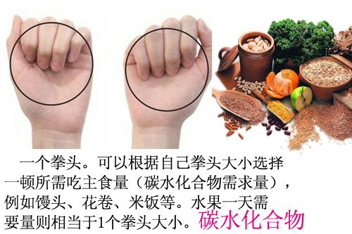 炭水化物の1日の摂取量は、2つの拳のような大きさが最適で、キビ、トウモロコシ、大麦、オート麦、ソバ、玄米などの粗い穀物が最適で、細かい穀物、麺類、蒸しパン、米なども食べるのに適している。