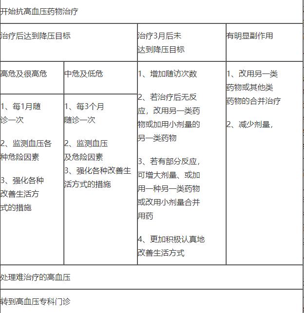 高血圧には一次性高血圧と二次性高血圧があり、二次性高血圧の病因は明らかであり、治療の鍵は原疾患(急性・慢性腎炎、褐色細胞腫、原発性アルドステロン症、甲状腺機能亢進症など)の積極的治療にある。一次性高血圧は全高血圧の90%以上を占め、具体的な発生機序は不明であり、その治療には生活習慣の介入と血圧薬による総合的治療が必要である。ただし、新たに原発性高血圧と診断された場合、血圧値が160/100mmHgを超えず、糖尿病、冠状動脈性心疾患、脳卒中などの基礎疾患がなければ、血圧降下薬の使用を一時中断し、生活習慣への介入のみを最長3カ月間行い、血圧が140/90mmHg以下にコントロールできれば血圧降下薬の使用を一時中断し、基準値に達しなければ血圧降下薬の使用を開始しなければならない。.