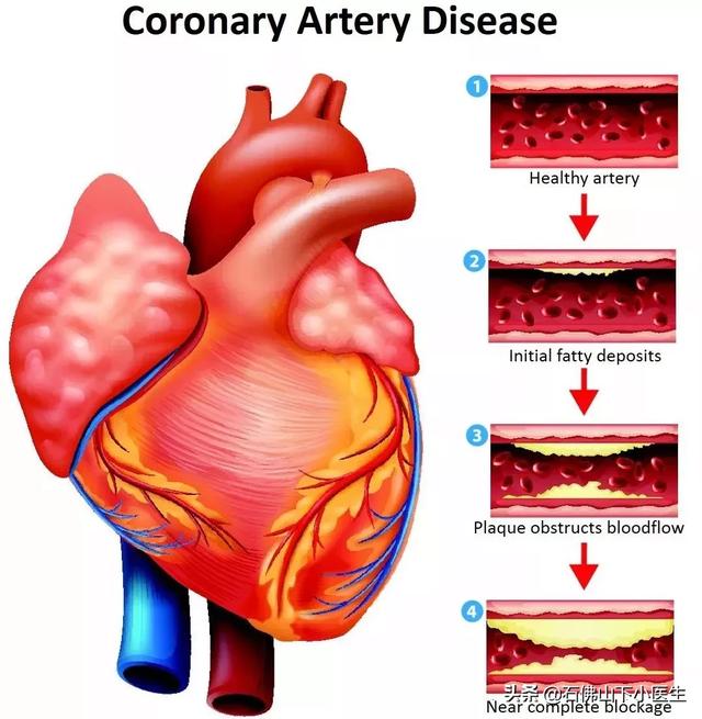(3) 心臓病:人がある年齢に達すると、実際、全身の多くの血管が動脈硬化を起こす可能性があるが、動脈硬化の狭窄がある程度に達した場合のみ、対応する臓器に明らかな影響を引き起こす。例えば、冠状動脈硬化症は、内腔の狭窄が50%以上であれば、冠状動脈硬化性心疾患と呼ぶことができ、心臓の機能に影響を与えるが、50%未満であれば、冠状動脈硬化症と呼ぶ。