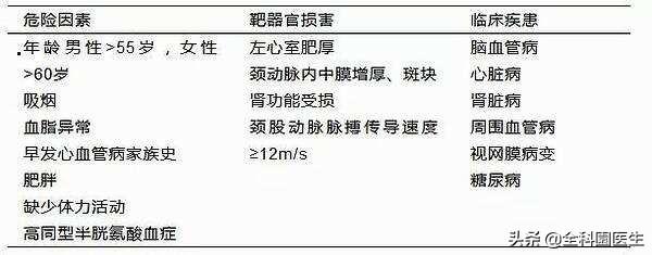 標的臓器障害:左室肥大(心電図または心エコー図);蛋白尿または/および血中クレアチニンの軽度上昇(1.2~2.0mg/dl);超音波またはX線検査で確認されたアテローム斑(頸動脈、腸骨、大腿骨、または大動脈);網膜動脈の限局性または広範な狭窄 2018年10/30。