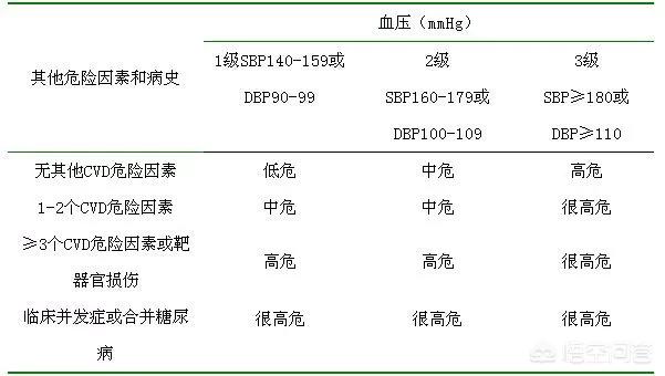高血圧患者は、合併症や臓器障害の有無、血圧上昇の程度によって、低リスク、中リスク、高リスク、超高リスクに分類される。併存疾患が多いほど、臓器障害が多いほど、あるいは血圧が高いほど、患者のリスクレベルは高くなる。ここで、血圧はあくまで患者をグループ分けするための基準であり、絶対的な基準ではない。いったん併存疾患があるか、または非常に高い血圧が第3レベル以上になると、患者の分類は非常に危険度が高くなる可能性があり、これはしばしば患者の高血圧が深刻であるかどうか、または危険であるかどうかの重要な基準と反映である。