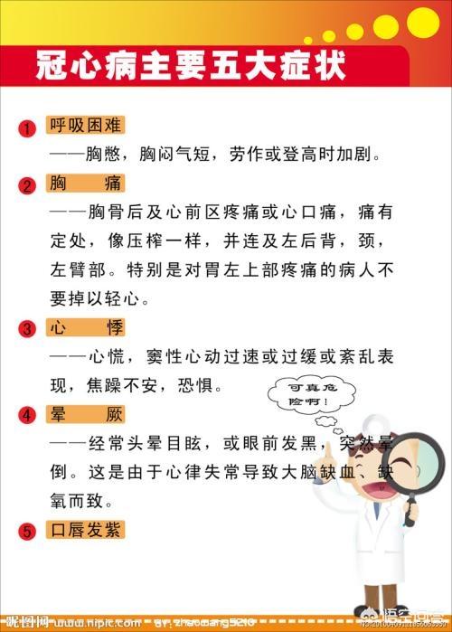 冠状動脈性心臓病は冠状動脈性動脈硬化性心臓病の略称で、冠状動脈の動脈硬化が原因で、血管の狭窄、血流障害、心筋虚血を引き起こし、胸苦しさ、息切れ、狭心症、不整脈を引き起こす。重症になると心筋梗塞を引き起こすこともある。