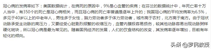 皆さん、こんにちは!冠状動脈性心臓病は現在、人体に非常に有害な病気で、大きな病気であり、1つは患者数が多いこと、2つ目は病気になること、病気の予後が重く悪いこと、3つ目は医療費が高いことで、大きな病気として知られています。