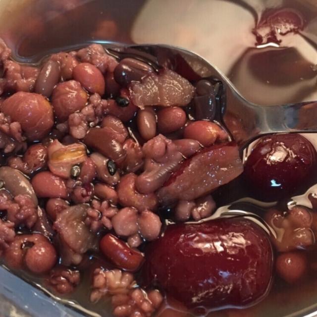 実践:ジョブの涙、黒豆、海藻、小豆の比率に従って1:1混合鍋に注ぎ、赤い日付とクコの実の煮込みの適切な量を追加します。