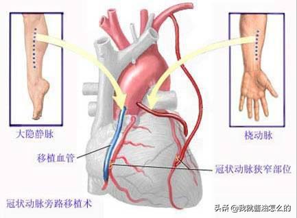 一般的に使用されるバイパス血管は、橈骨動脈、左内乳腺動脈、伏在静脈である。左内乳腺動脈はその直径と血流が冠動脈と類似しているため、開存率が最も高く、術後10年での開存率は90%以上である。橈骨動脈は最もよく使われる末梢動脈で、10年後の開存率は約80%である。伏在静脈も、アクセスが容易でそれ自体への影響が少ないため、橋渡し材料としてよく使用されるが、動脈として使用される静脈であるため、開存率は動脈よりも低く、一般に10年後の開存率は60~70%である。しかし、この開存率は絶対的なものではなく、術後に患者の高血圧、糖尿病、高脂血症が効果的にコントロールされているかどうかに関係する。
