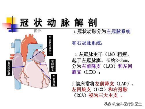 心臓に血液と酸素を供給する冠動脈は主に3本あり、非常に短い左冠動脈によって分断されている。左回旋動脈和左前下行動脈も右冠動脈原材料