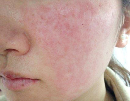 顔面のアレルギー性皮膚炎。顔面のアレルギーは、身体の他の部位のアレルギーとは異なるため、特別視される。顔面アトピー性皮膚炎の原因は複雑であるが、一般的には、能動的および受動的な接触要因に関連している。能動的接触には、化粧品、シャンプー、コンディショニング剤、外用薬との接触が含まれる。顔面アトピー性皮膚炎患者の多くはホルモン外用剤の使用経験があり、頻回に使用した結果、ホルモン依存性皮膚炎が形成され、皮膚のバリア機能が傷害されると、その臨床症状はより複雑になり、治療の難易度が増し、遅延時間が長くなる。従って、ホルモン製剤の外用は医師の指導のもとに行うべきである。