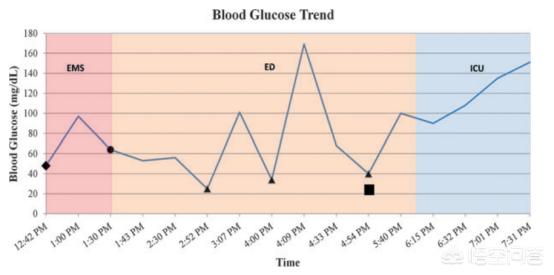 この患者は長年糖尿病患者であり、毎日インスリンを服用していた。普段は血糖コントロールは問題なかったが、日中に下痢をしたため、昼と夜は食事を摂らなかったが、習慣のため、そのすべてにインスリンを服用し、その結果、重度の低血糖を起こした!