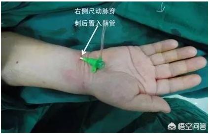 1、医師は患者の右手の動脈を穿刺し、すべての基本となるシースを入れる。