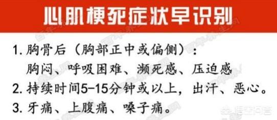 また、注意しなければならない次のような状況もある。すなわち、心臓発作患者が突然、胸の痛み、歯の痛みや腕の痛み、吐き気や嘔吐、大量の発汗などを発症した場合、適時に病院に行かなければならない120の緊急電話番号に電話するのがベストである。この場合は急性心筋梗塞の可能性が高いので、少しの不注意や躊躇もあってはならない。