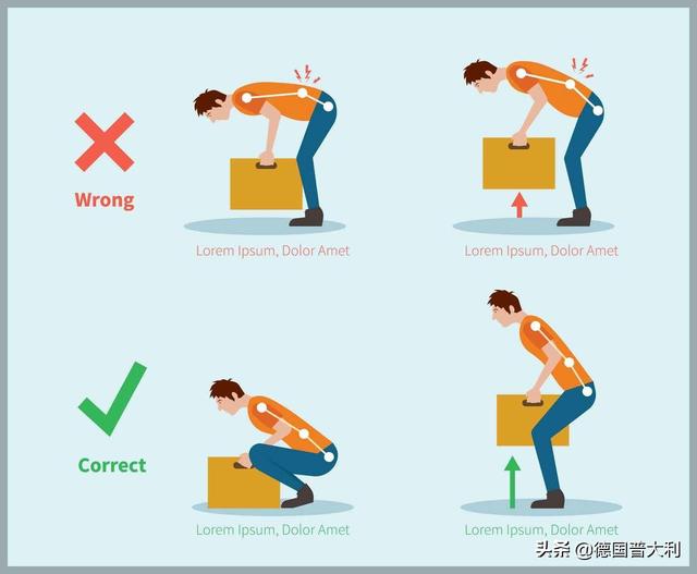 9、陣痛、陣痛の姿勢が正しくないと、腰椎の筋肉の緊張を引き起こしやすい。ここで、腰椎の筋肉疲労を防ぐための正しい労働姿勢をいくつか挙げてみよう。重い荷物を持つときは、腰と胸を少し前かがみにし、腰と膝を少し曲げ5、安定した歩幅で、大きな一歩を踏み出さない。