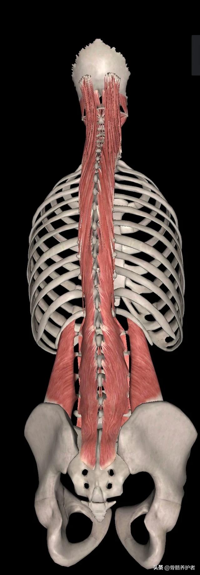 脊柱起立筋という筋肉は、後頭骨から背骨を通り尾てい骨まで伸びている。骨盤の位置がずれると、脊柱起立筋が引っ張られるのではないだろうか?脊柱起立筋が引っ張られると、筋肉が緊張して硬くなる。