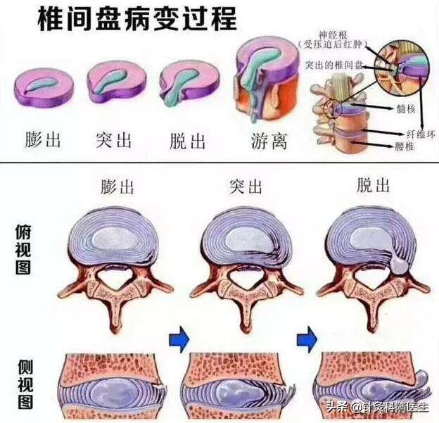 平たく言えば、腰椎椎間板ヘルニアは腰椎椎間板膨隆が悪化したもので、膨隆からヘルニア、すべり症、そして遊離椎間板へと徐々に進行していきます。ほとんどの場合、椎間板が進行するにつれて症状は徐々に悪化していきます。