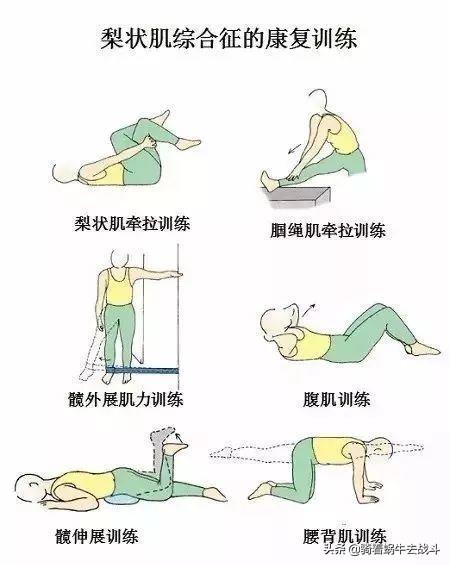 梨状筋症候群もまた、梨状筋の損傷に伴う坐骨神経の炎症によって引き起こされる痛みを伴う疾患である。炎症は保存的治療で緩和することができます。急性期で痛みが明らかな場合は、ベッドで安静にし、患肢を外旋・外転させる必要があります。慢性の場合は運動を強化し、症状の再発を防ぐ必要があります。